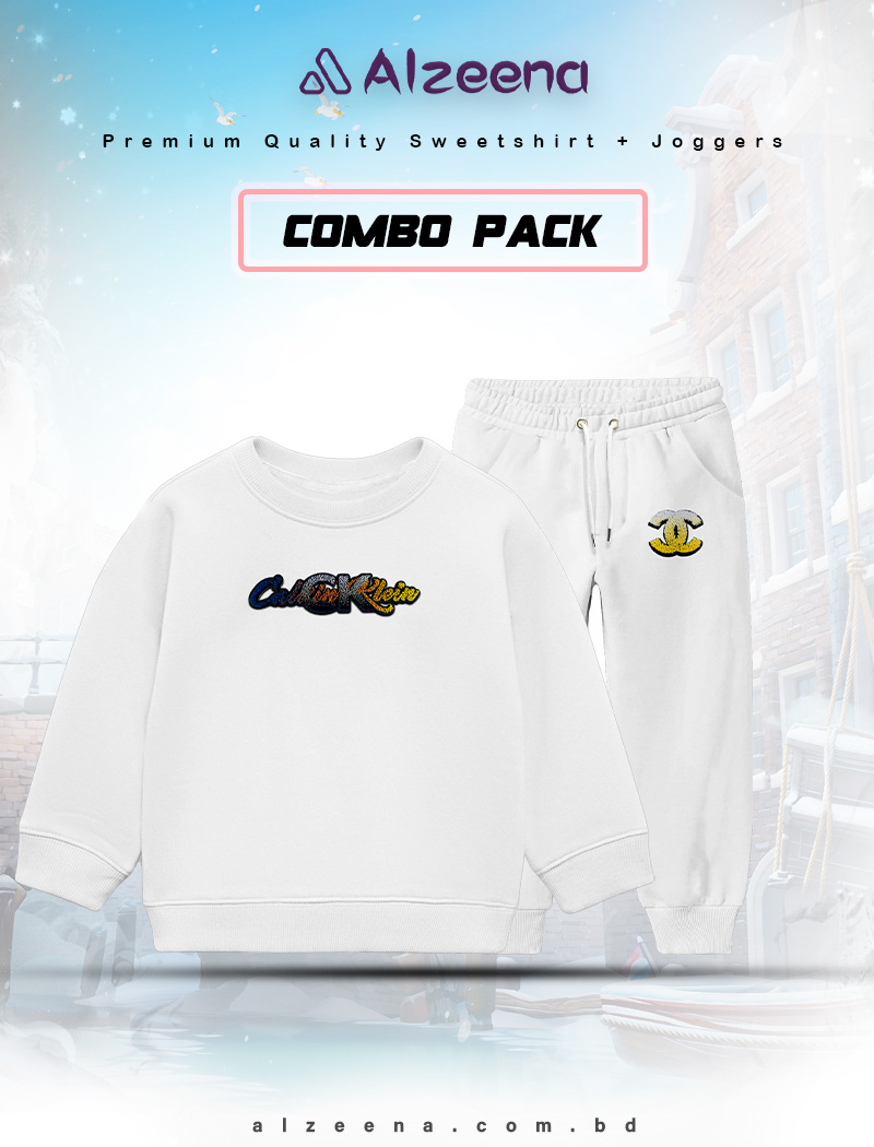 Brand name: CK &Gucci Pattern: Sweatshirt & Jogger Combo Fabric :Fleece Cotton Fabric Color : White Super Premium ,Soft and very comfortable to wear সাইজ মেজারমেন্ট - Hoodie : 2/3 : Chest- 23” Length- 15.5” 4/5 : Chest- 24” Length- 17.5” 6/7 : Chest- 26” Length- 18.5” 8/9 : Chest- 28” Length- 19.5” 10/11 : Chest- 30” Length- 20.5” 12/13 : Chest- 32” Length- 21.5” Jogger : 2= Waist: 19", Length: 21'' 4= Waist: 20", Length: 22" 6= Waist: 22", Length: 23.5" 8= Waist: 24, Length: 25.5" 10= Waist: 26, Length: 27.5" 12= Waist: 28, Length: 30.5"