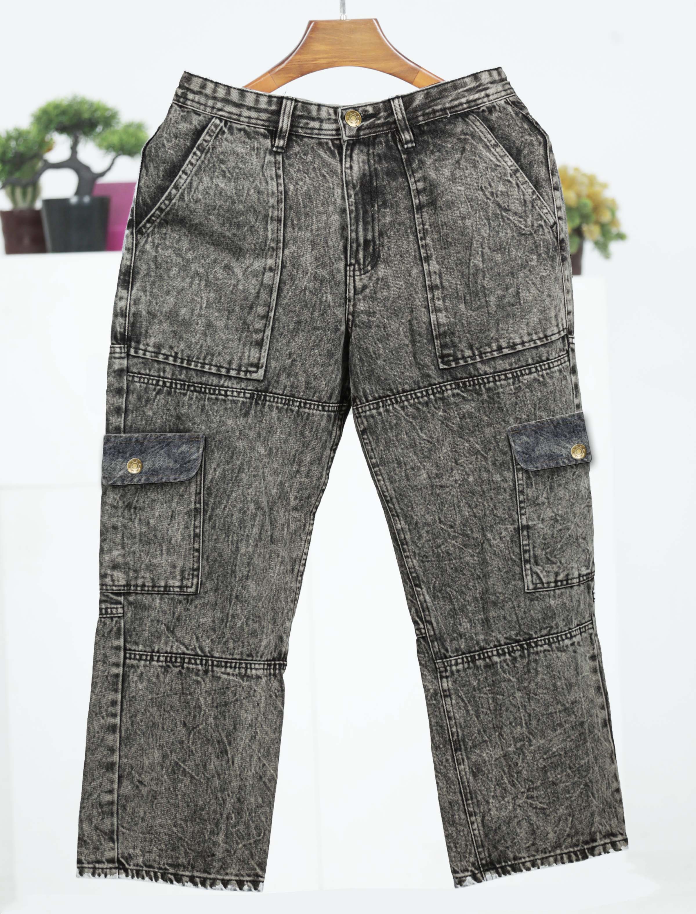 PN92 Black wash 6 Pocket cargo baggy jeans pant