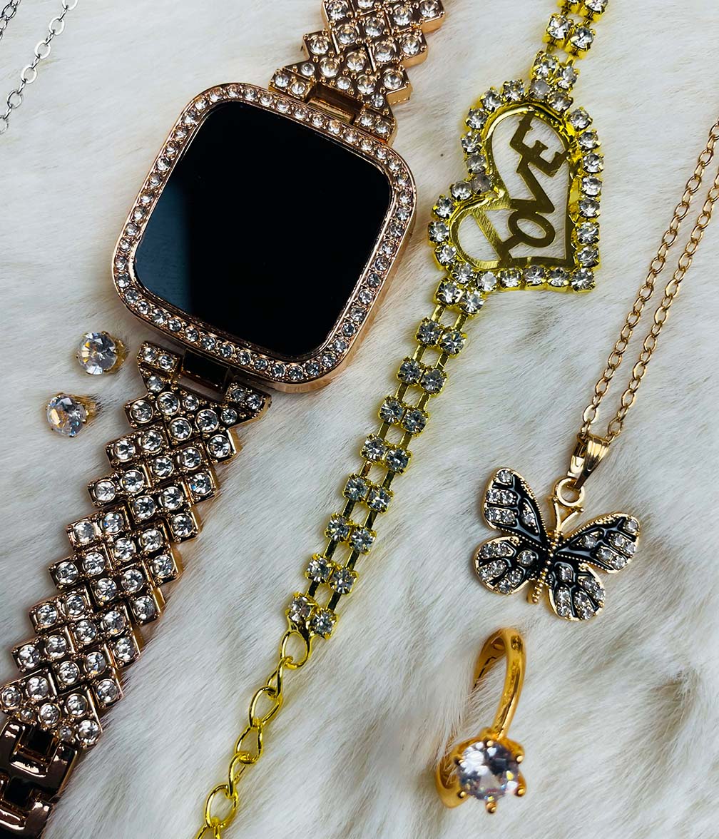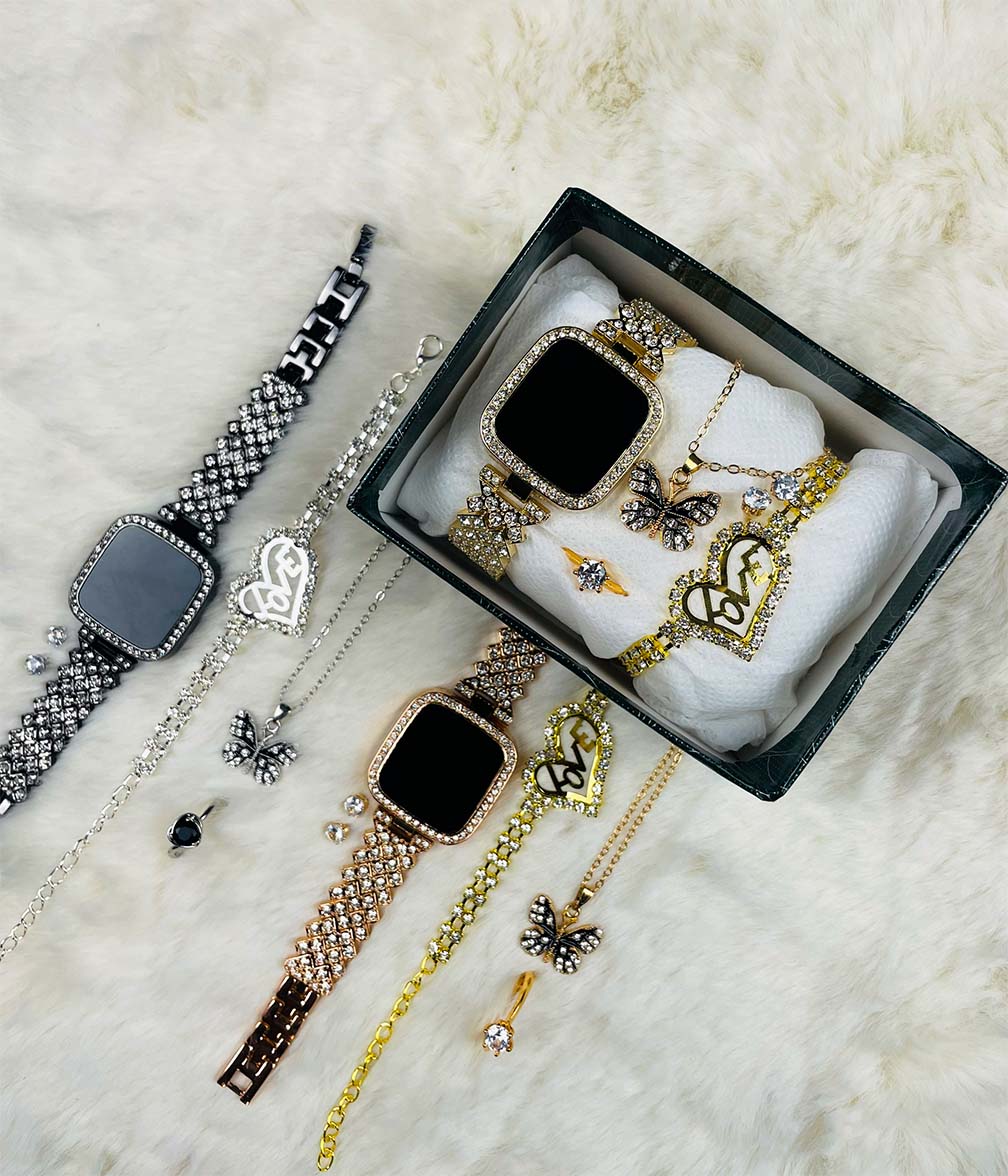 🕒 ১. স্টাইলিশ ডায়মন্ড স্টন ঘড়ি 🦋 ২. Butterfly নেকলেস 💍 ৩. প্রিমিয়াম ডায়মন্ড কাট রিং 🥰৪. Love Stone Bracelet 👂 ৫. এক জোড়া কানের টপ 🎁 ৬. লাক্সারি গিফট বক্স ফ্রী!